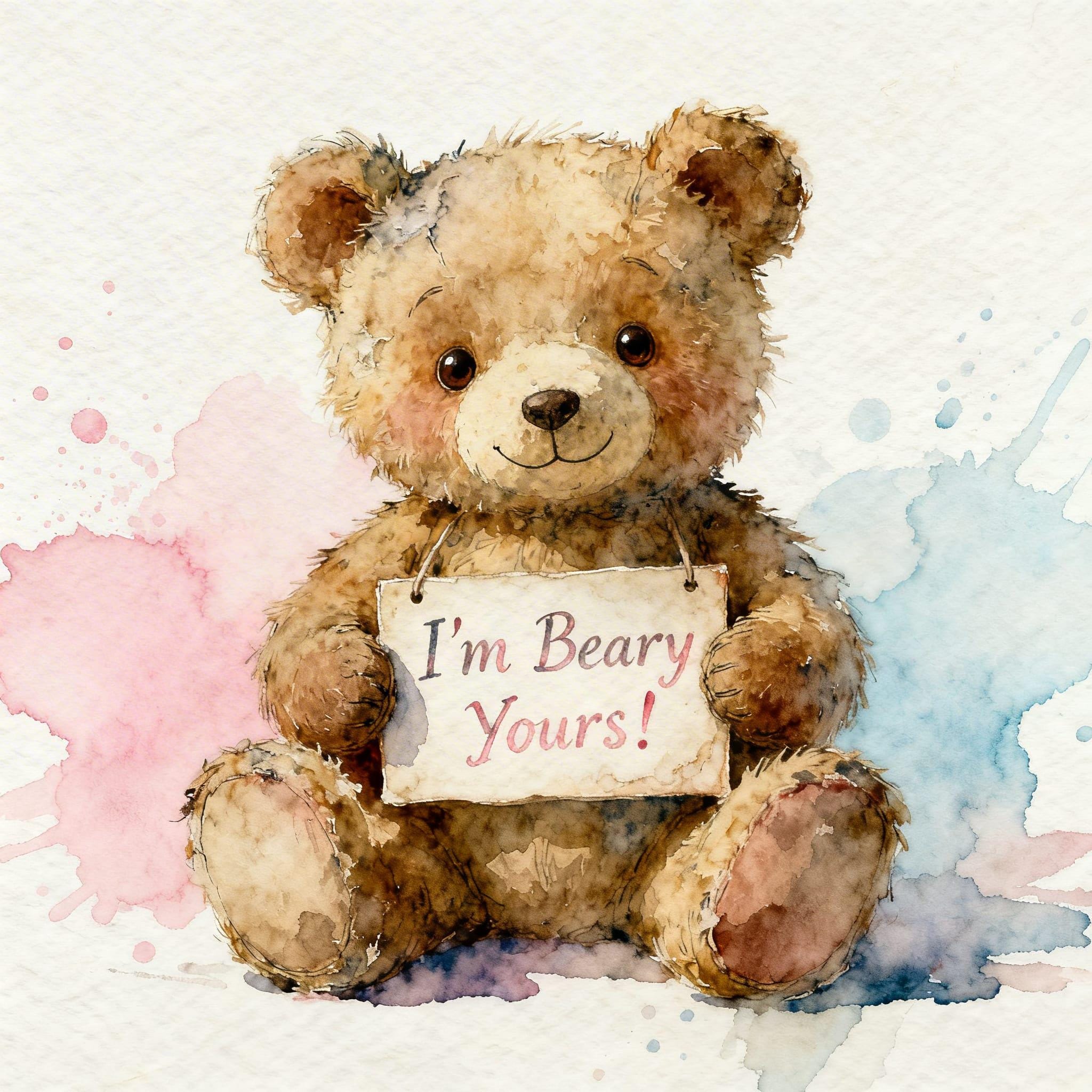 cute, i'm beary yours, vintage teddy bear print, watercolor, digital download