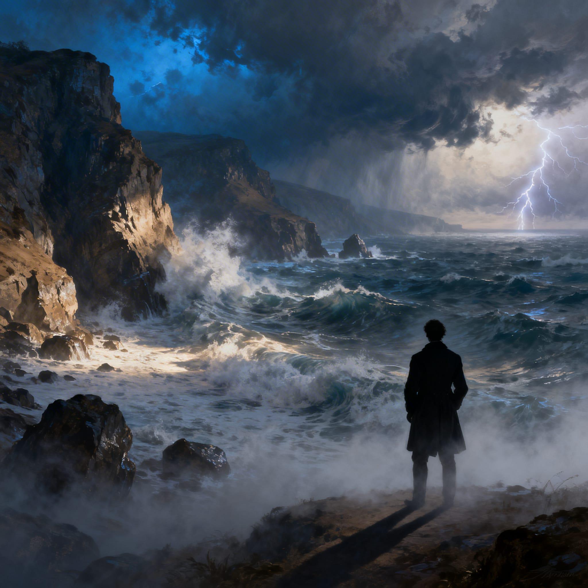 man victorian, fog, coastline, cliff, landscape, digital download