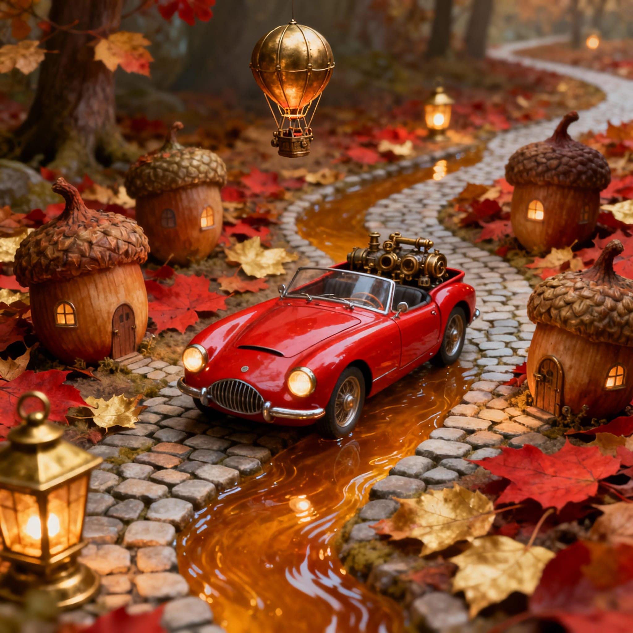 autumn, vintage sports car, fantasy, red, gold, digital download