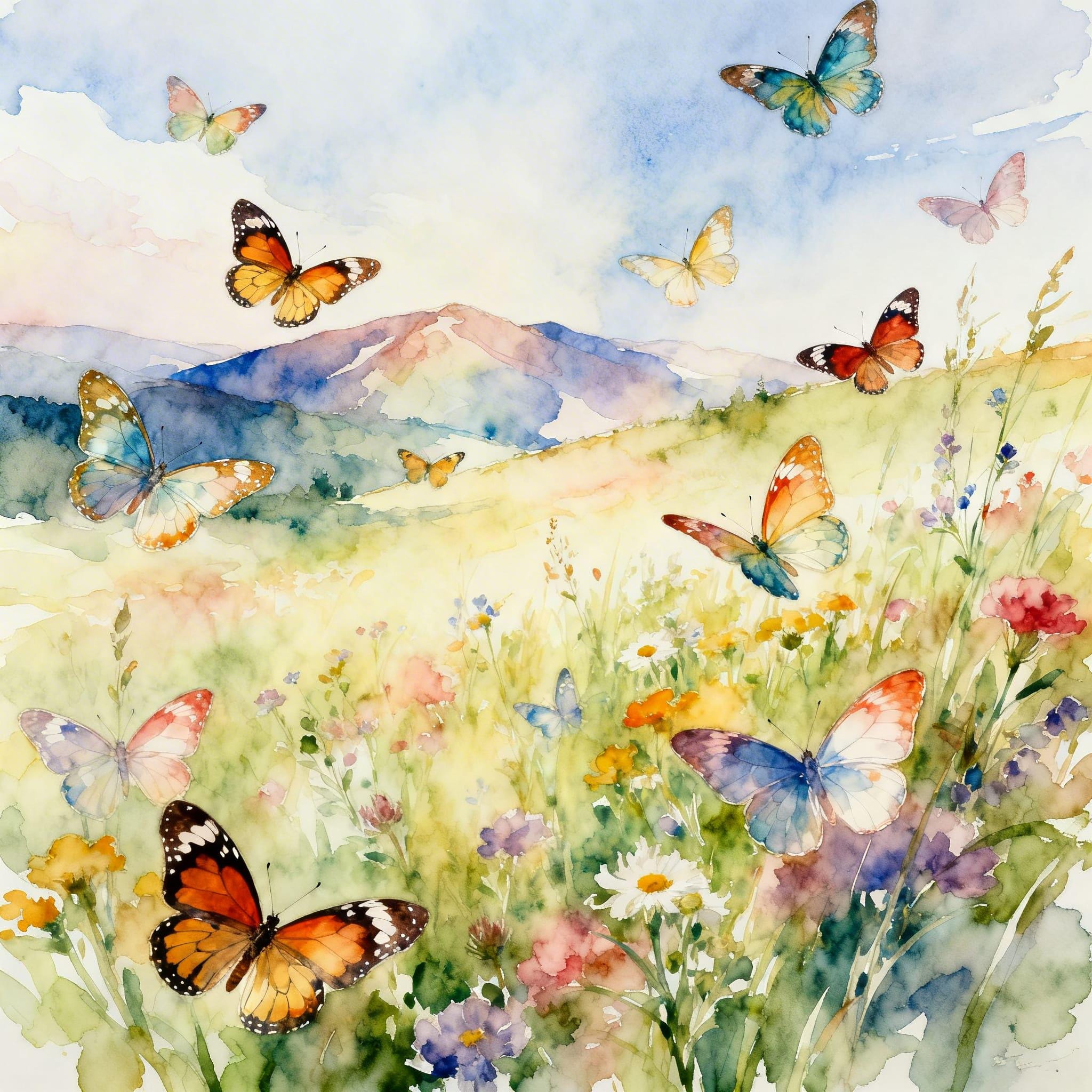butterflies, nature, colorful, landscape, watercolor, digital download