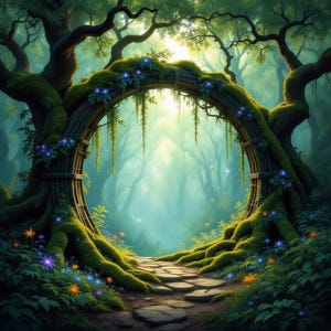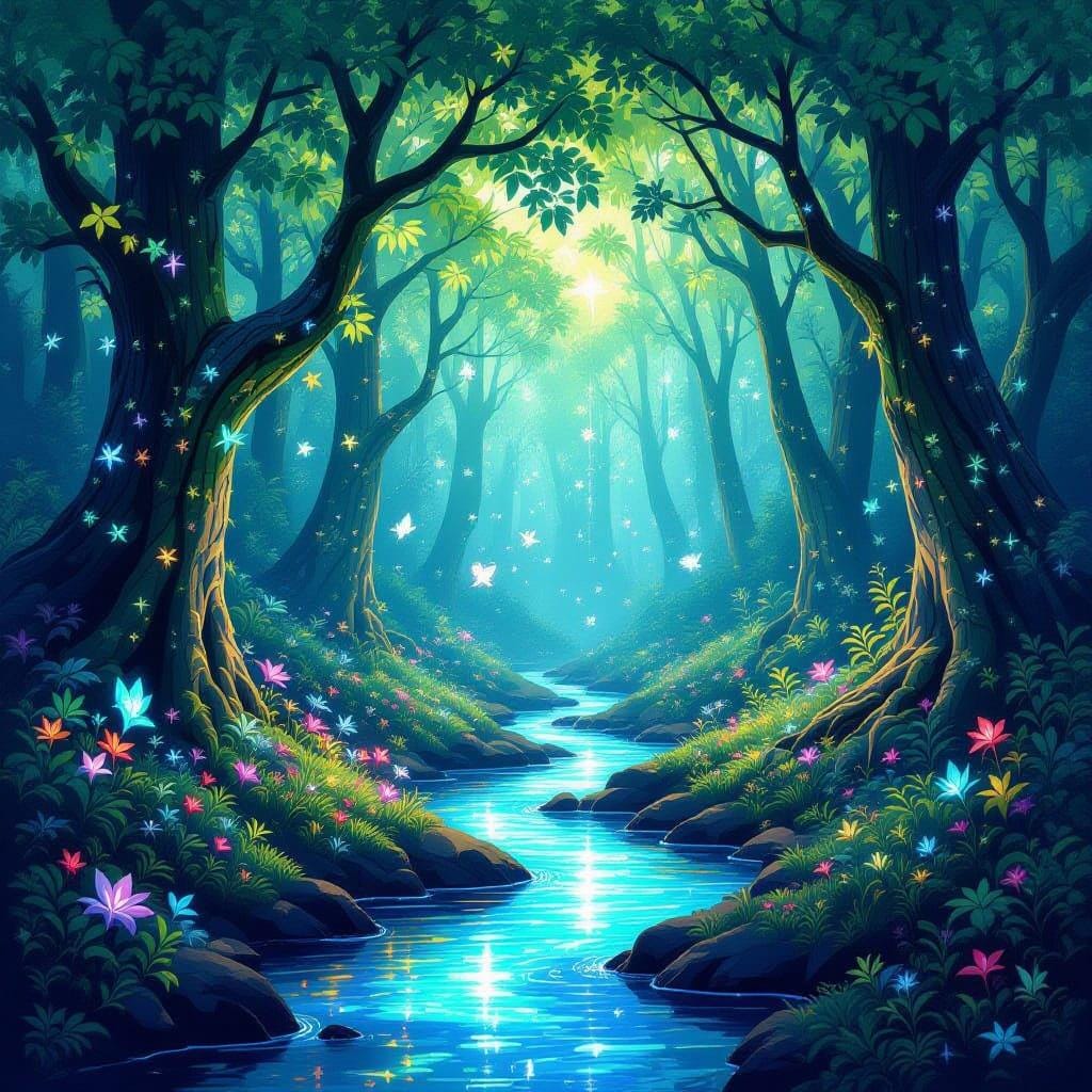 enchanted forest, stream, fantasy, landscape, digital download