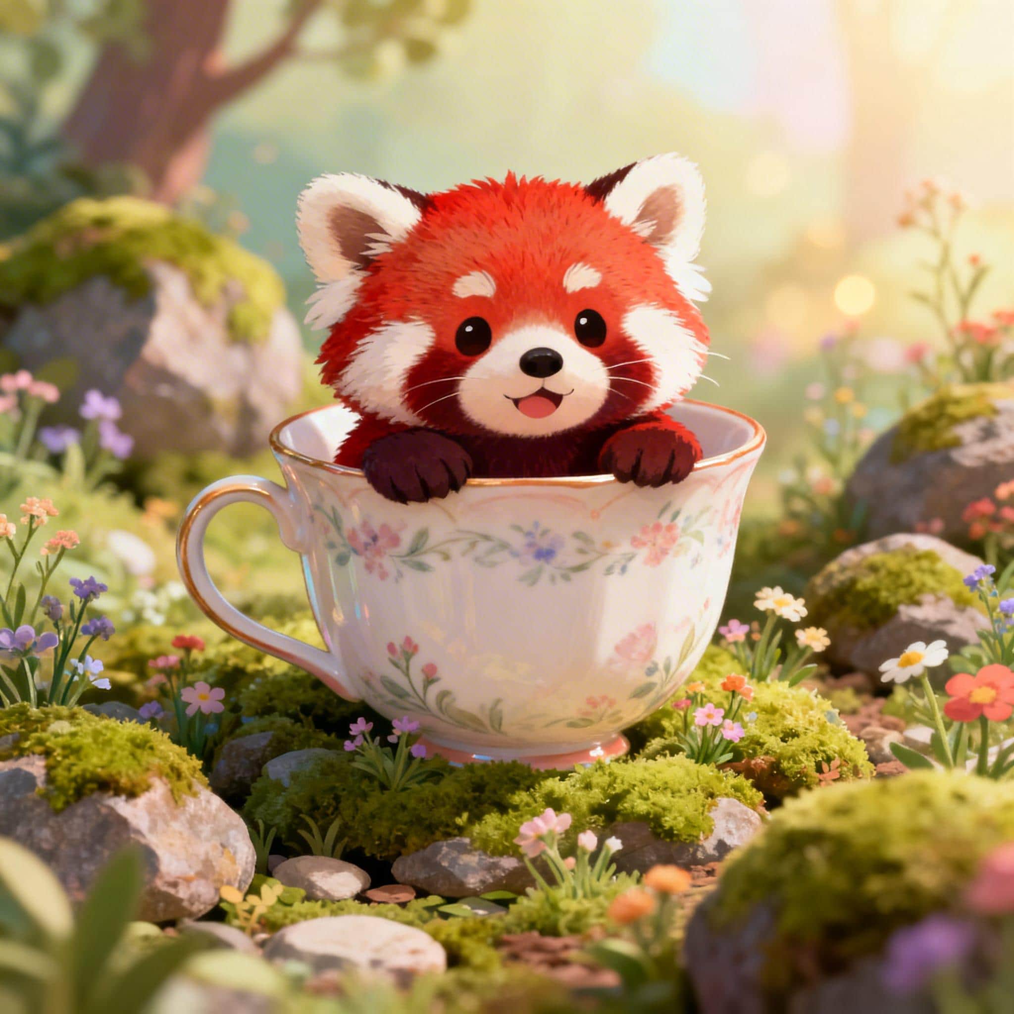 red panda, teacup, nature, landscape, cute animals in teacups, digital download