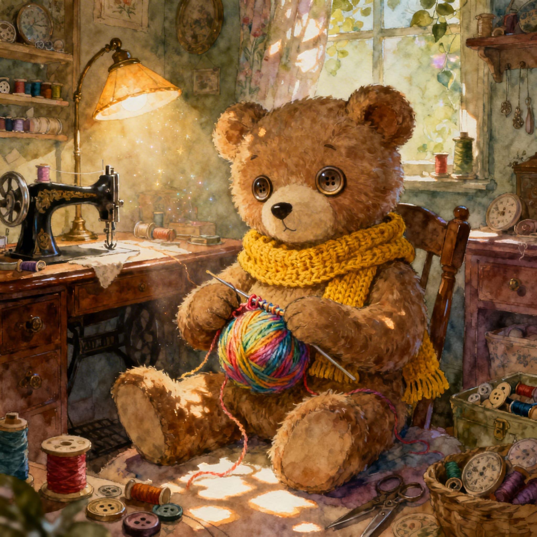 teddy bear, sewing room, yarn, vintage, cute, digital download
