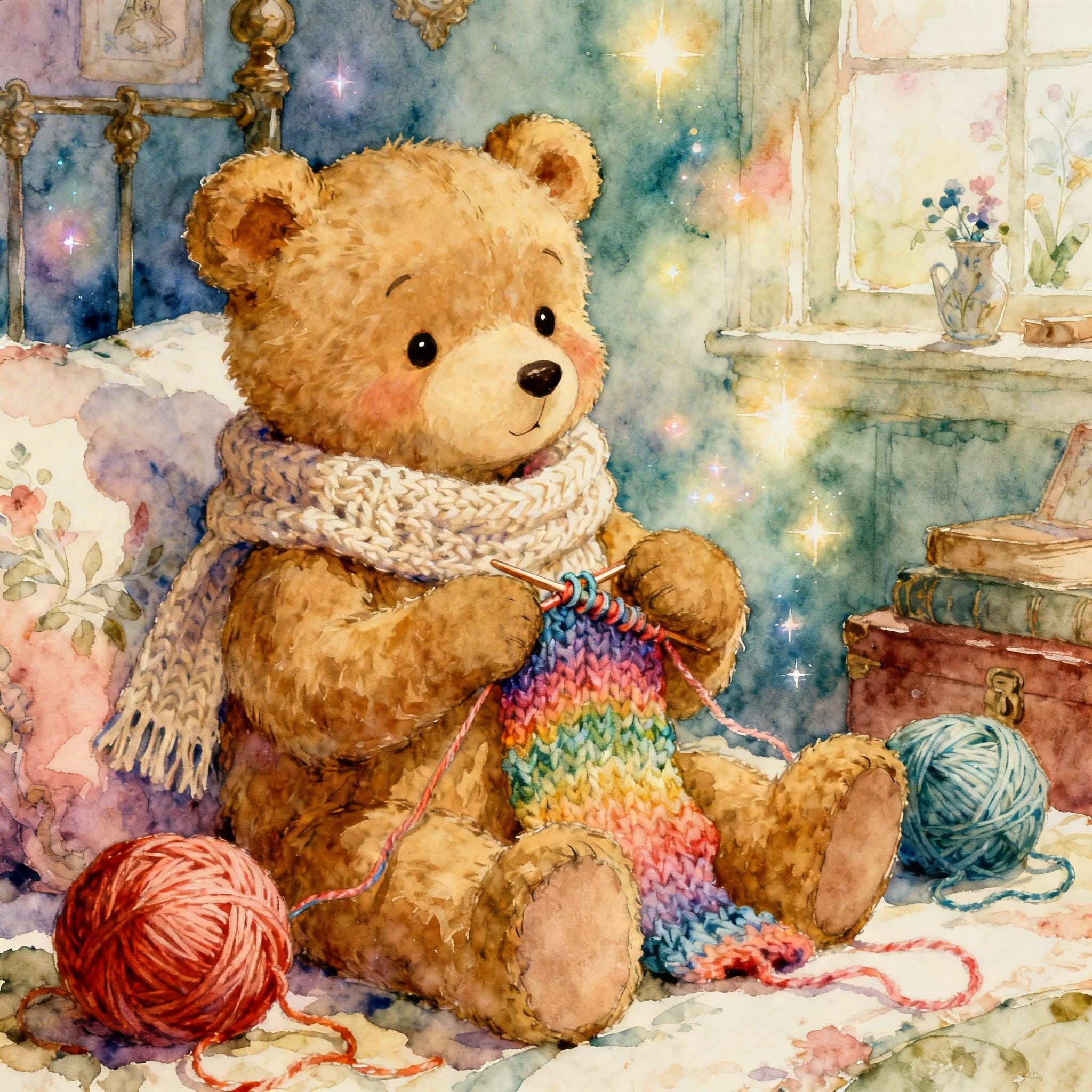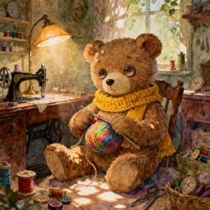 teddy bear, yarn, knitted scarf, cute, vintage, digital download