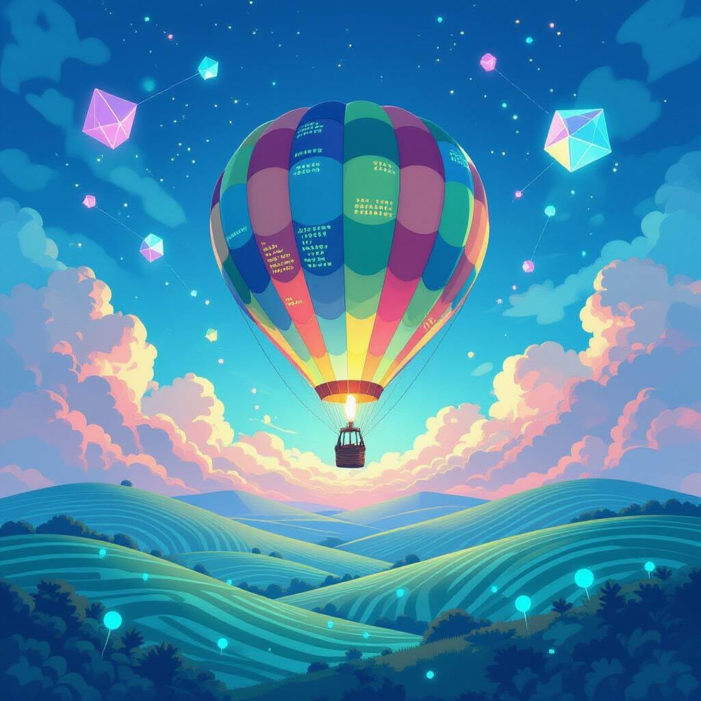 hot air balloon, rolling hills, fantasy, balloon, digital download
