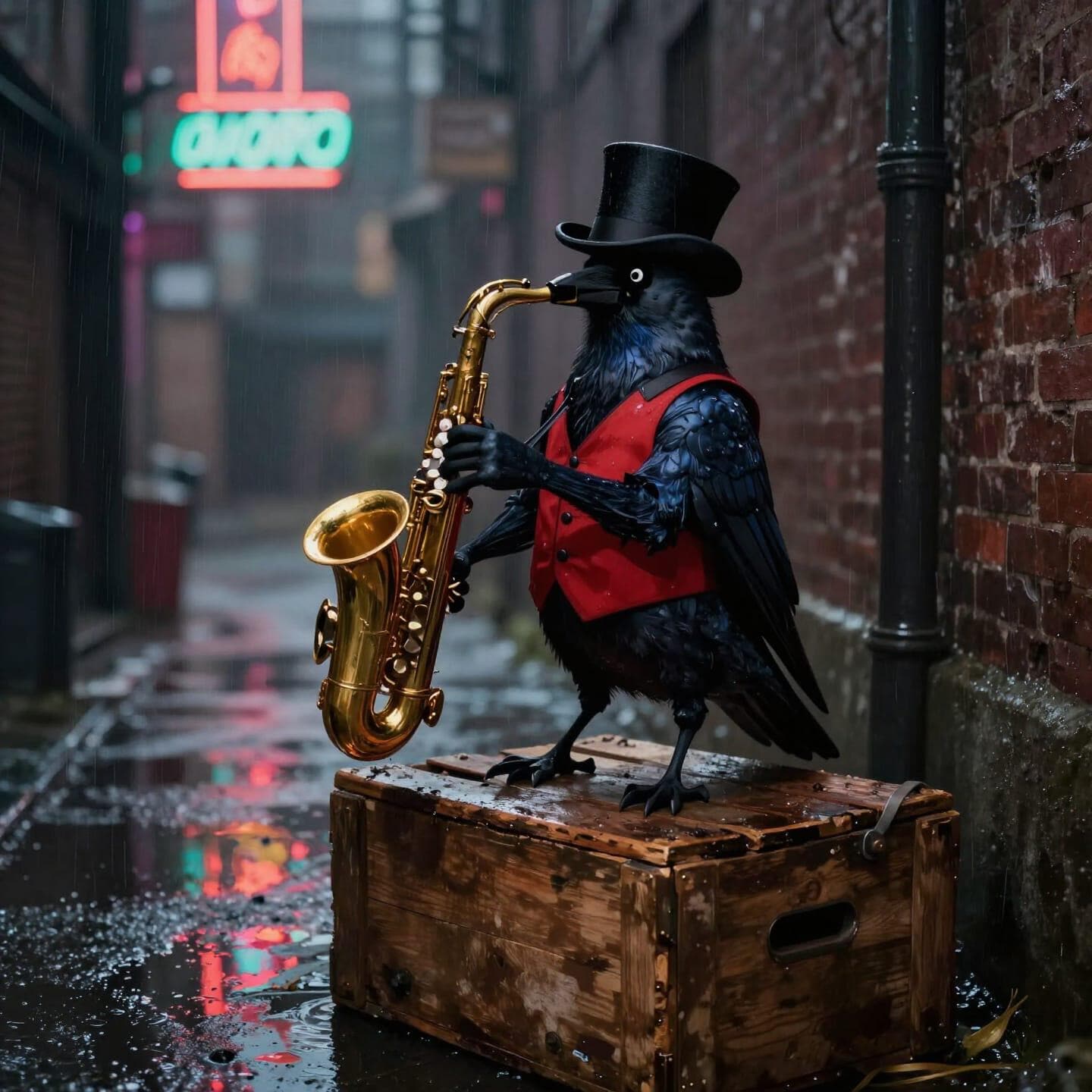 dapper crow, waistcoat, top hat, saxophone, birds playing instruments, digital download